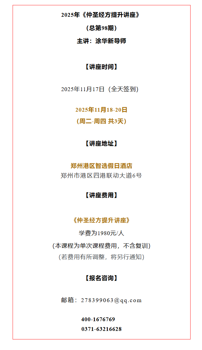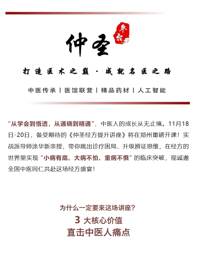 【11月郑州站・重磅开课】仲圣经方提升讲座:提升提升再提升,融会贯通!