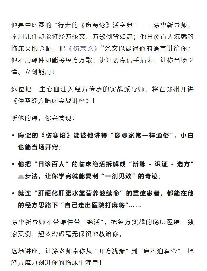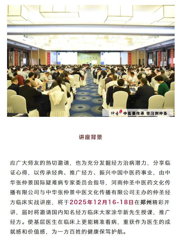 这堂课带你见识 “不用课件却能让疗效炸场” 的中医传奇!|2025年第8期《仲圣经方临床实战讲座》郑州站重磅来袭