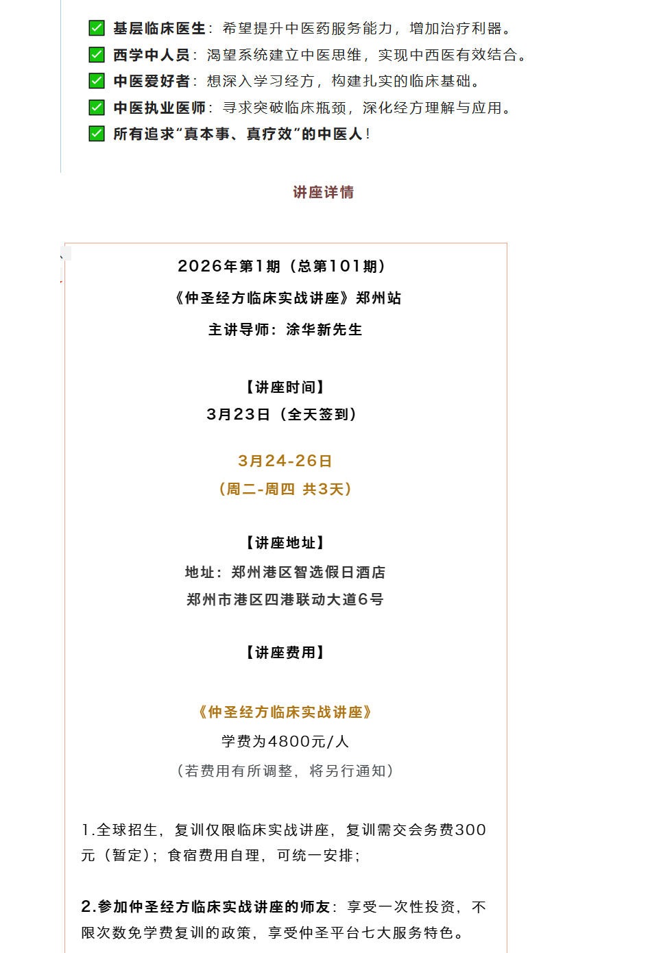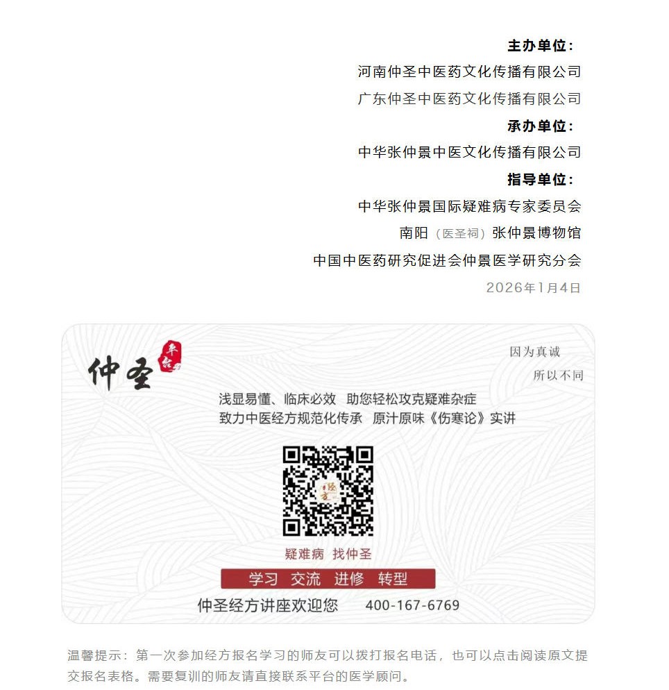 开年钜献·实战为王!|2026年第1期《仲圣经方临床实战讲座》郑州站重磅来袭
