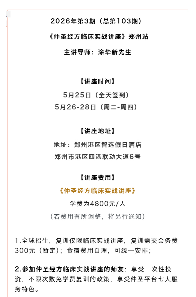 临床搞不定疑难杂症?你缺的不是努力,是这场讲座!|2026年第2期《仲圣经方临床实战讲座》郑州站重磅来袭