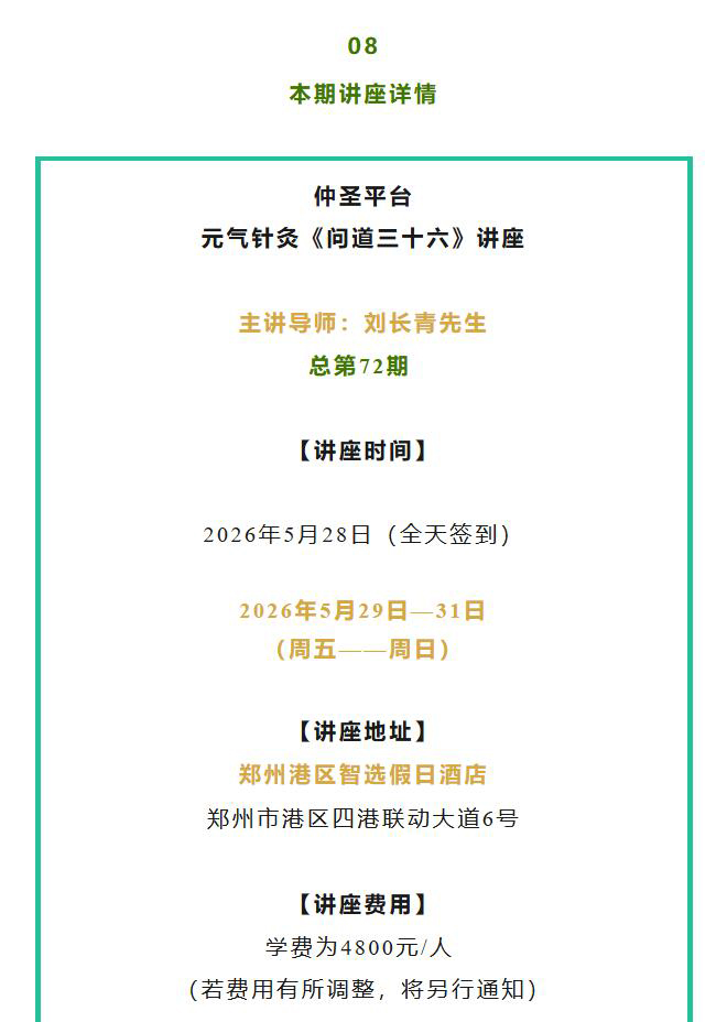 “ 学针灸——真的太简单!”‖ 仲圣元气针灸《问道三十六》讲座郑州站开课通知!