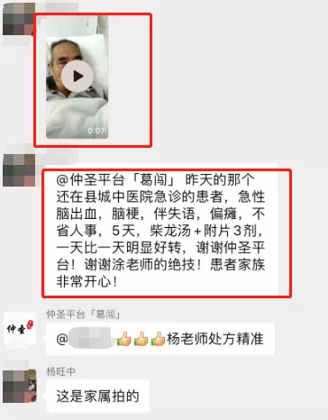 患者急性脑出血、脑梗、伴失语,偏瘫,不省人事,5天,柴胡加龙骨牡蛎汤+附片3剂,比明显好转,谢谢仲圣平台,谢谢涂华新导师的绝技!患者家属非常开心!家属特拍来视频。