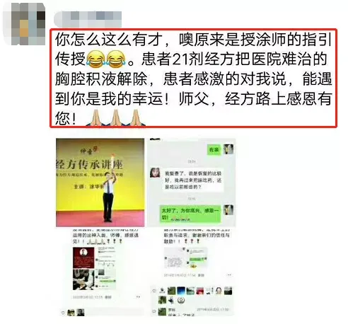 仲圣师友分享:得蒙涂华新导师指引传授,为使用患者21剂经方,把医院难治的胸腔积液解除,患者感激地说,能遇到您是我的幸运!师父,经方路上,感恩有您!